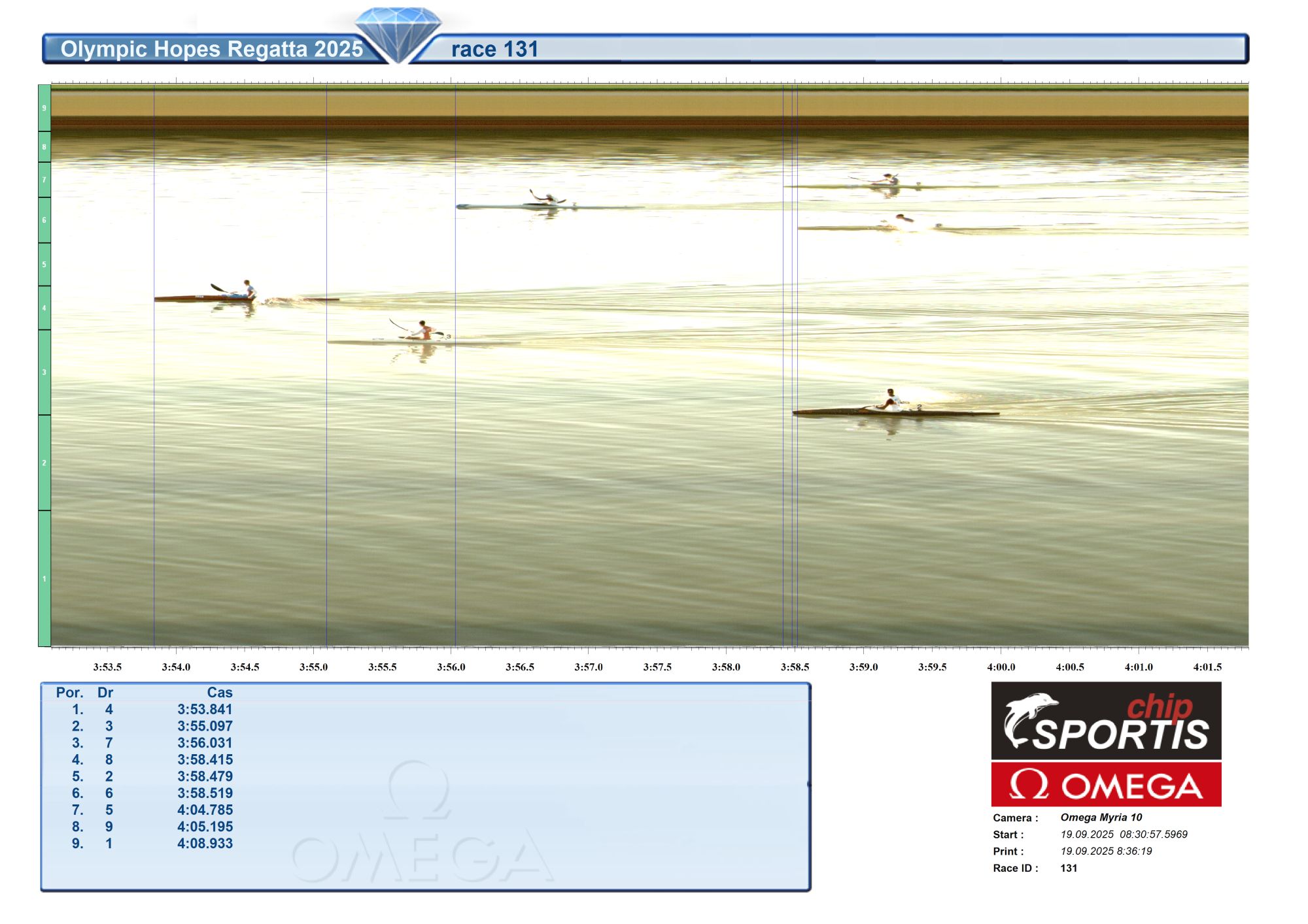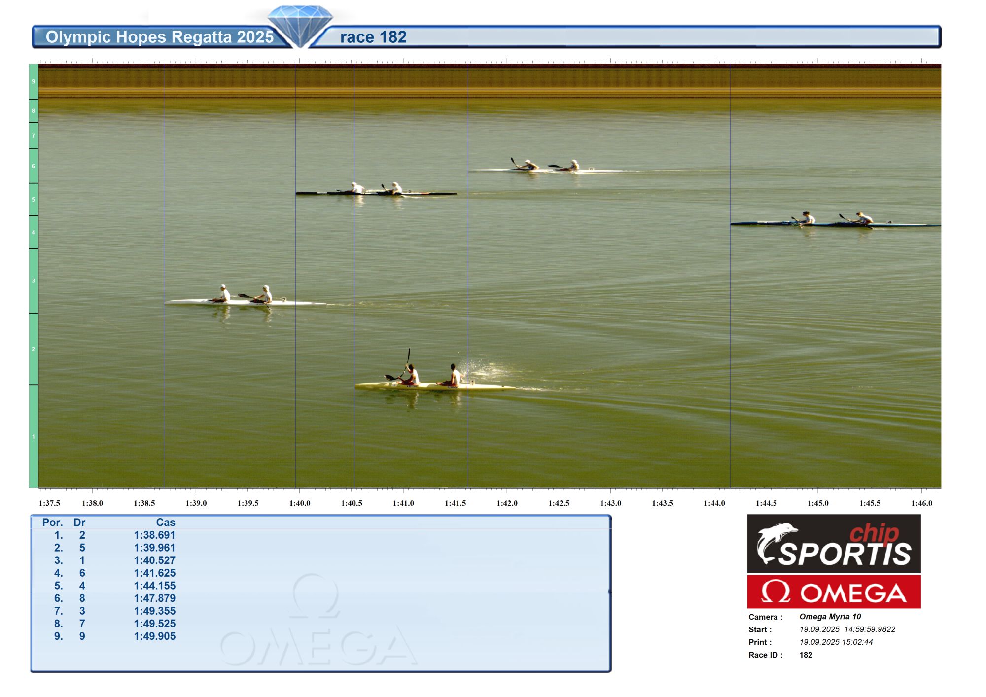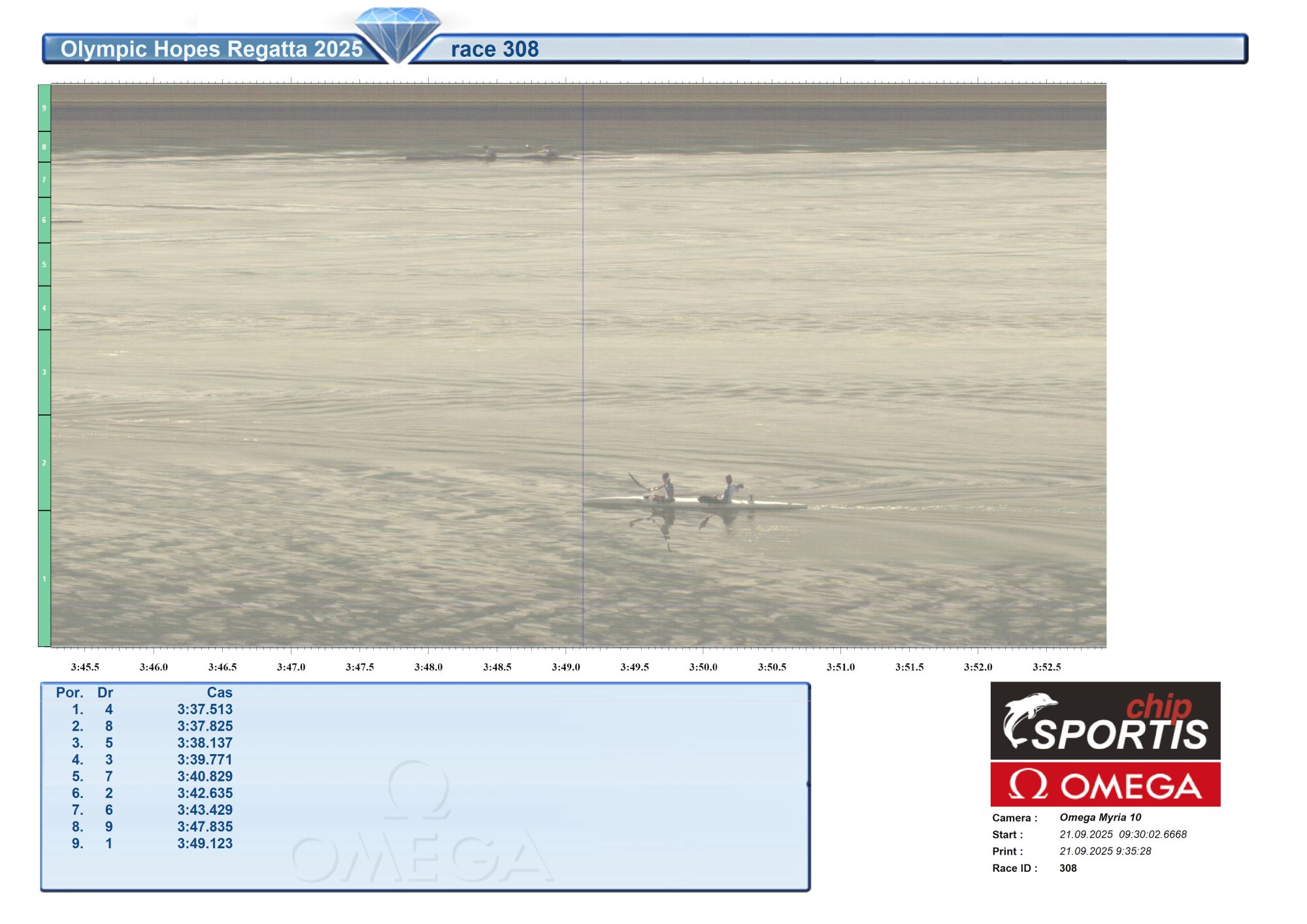 | 308 | 09:30 | K2 men 1000 m U17 | Semifinále A SFA |