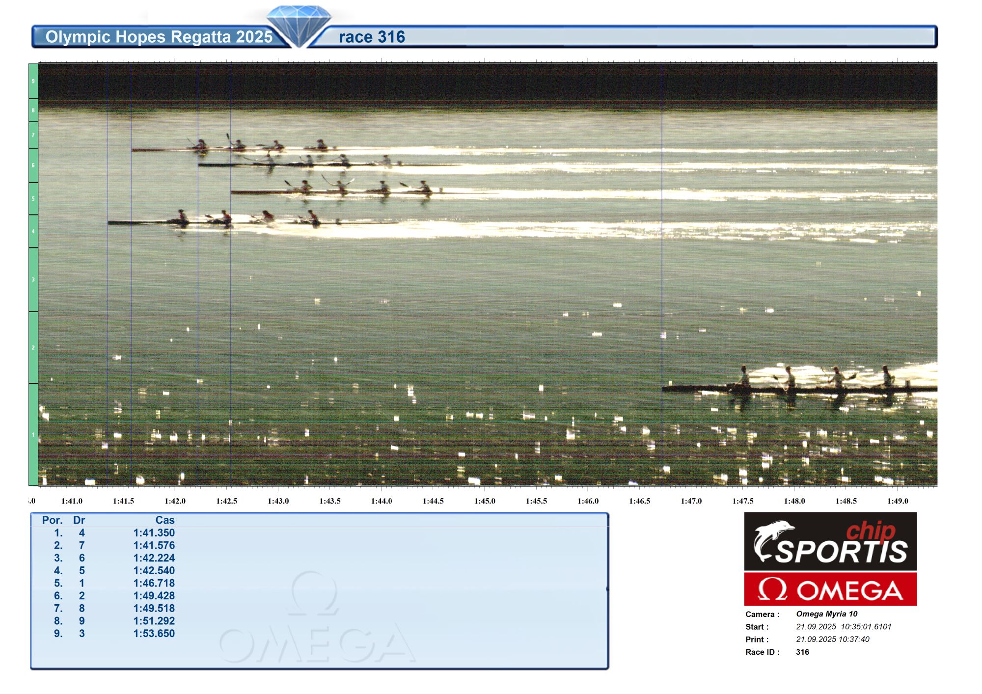| 317 | 10:40 | K4 men 500 m U17 | Semifinále A SFA |
