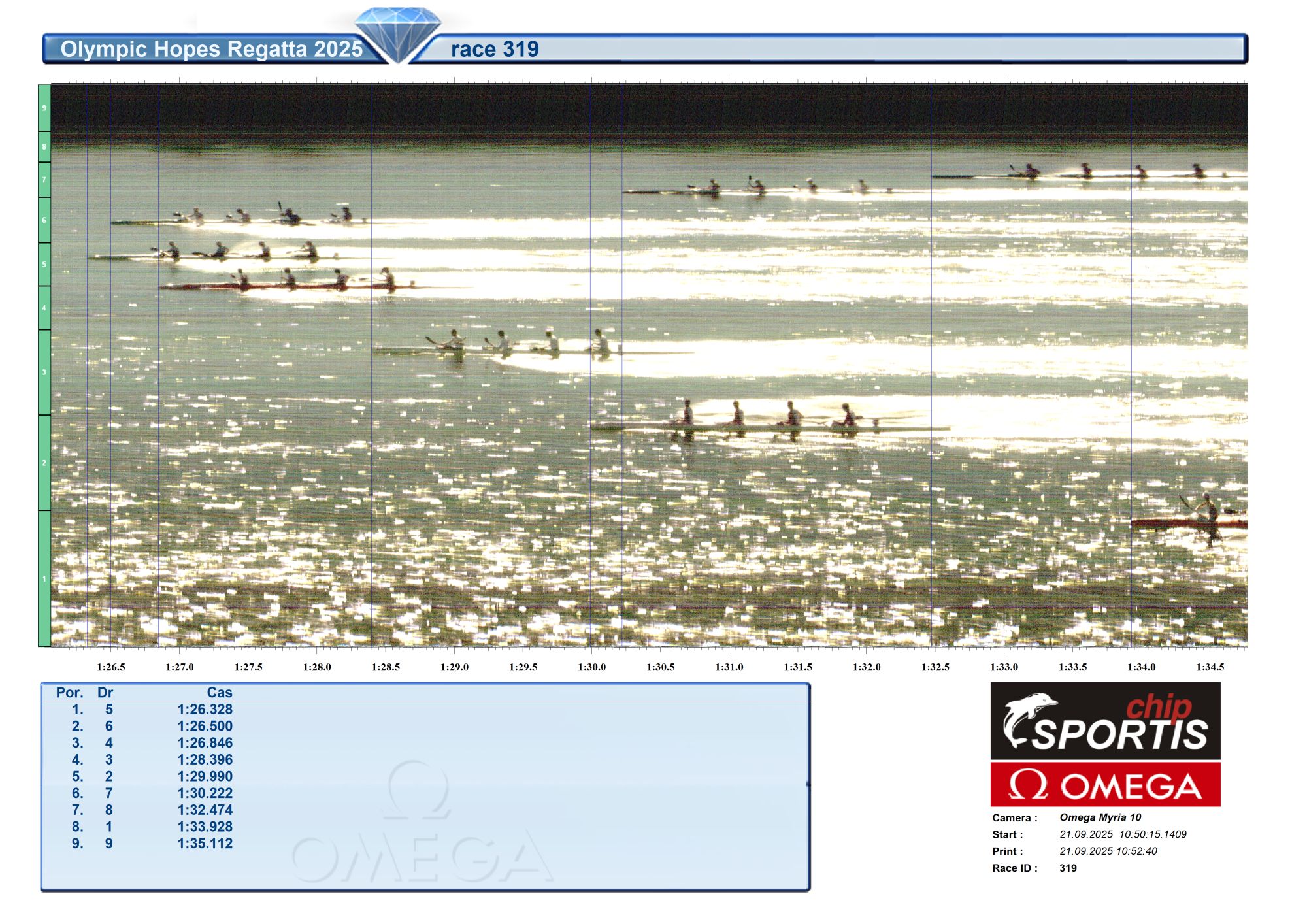 | 319 | 10:50 | K4 men 500 m U17 | Semifinále C SFC |
