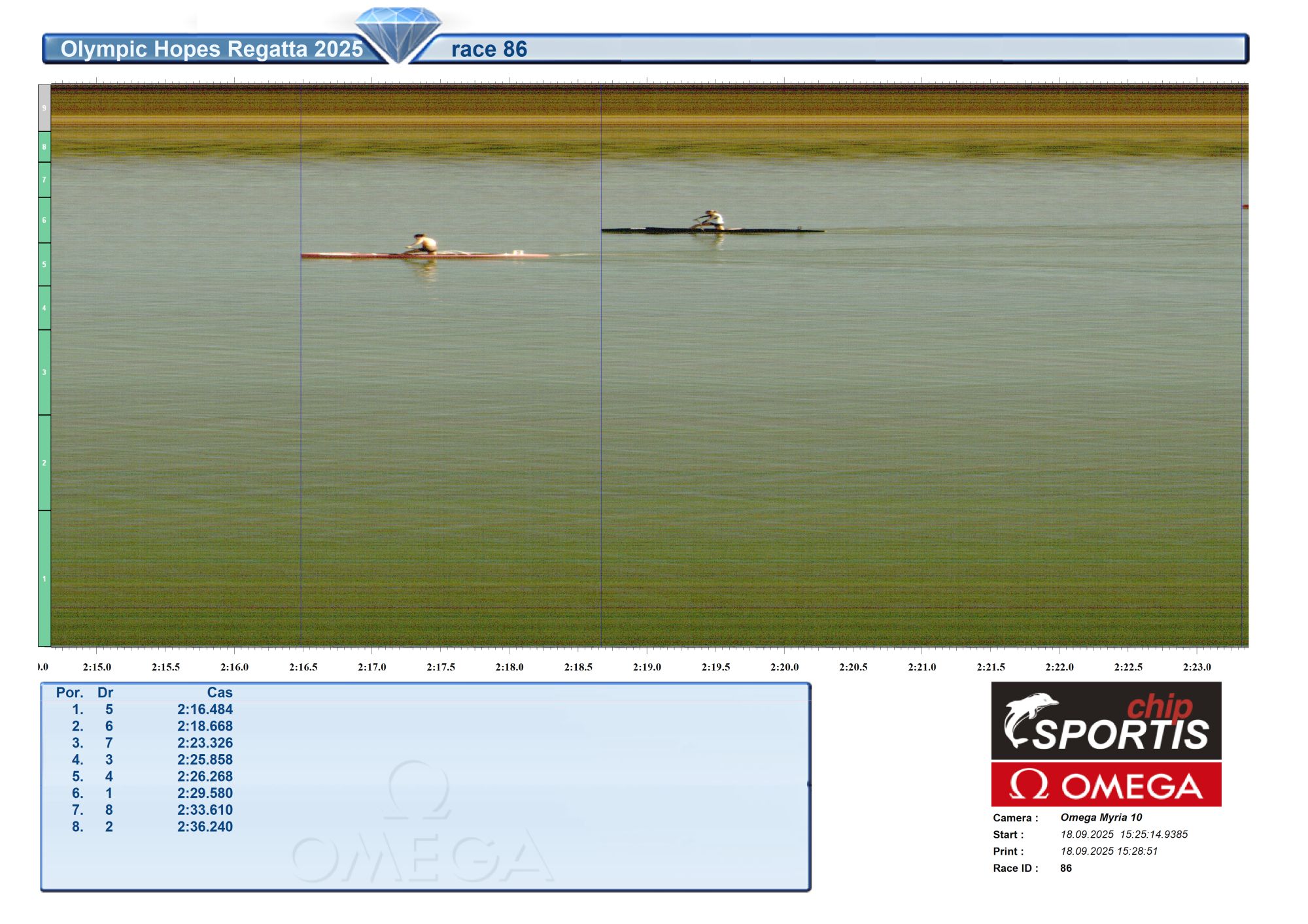| 247 | 11:00 | C2 men 500 m U16 | Semifinále A SFA |